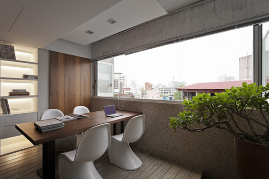 這樣的主管辦公室你應該不常見吧?這里沒有了傳統領導辦公室中的制式化的辦公桌,取而代之的卻是給人一種特別親近的檸檬綠沙發和極富餐廳感的大桌,整體的融合顯得特別簡單而且溫馨,不再有昔日的壓抑感。