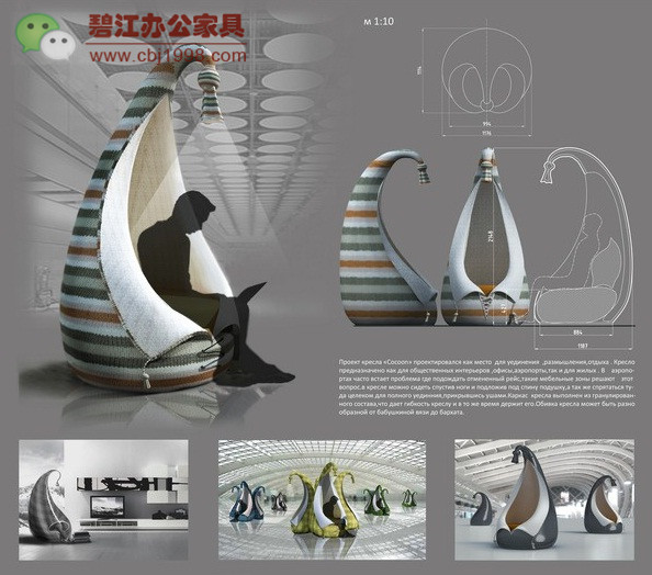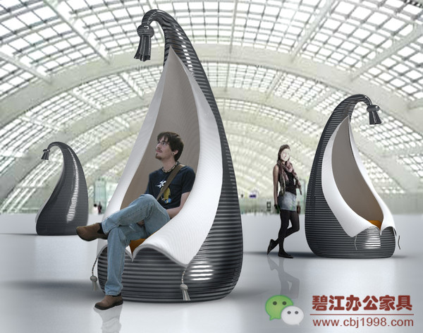 俄羅斯設(shè)計(jì)師湯普森湯普森發(fā)現(xiàn)了一種現(xiàn)代休息方法,當(dāng)你在公共空間,你可能需要一些隱私。“繭”是一個(gè)具有漂亮外觀舒適的扶手椅,就像了一個(gè)著名的中世紀(jì)阿拉伯故事---阿拉丁。它是一個(gè)用于公共環(huán)境的獨(dú)特項(xiàng)目,如機(jī)場(chǎng),辦公室,它不存在專門設(shè)計(jì)的領(lǐng)域等辦公家具,帶給你舒適和安靜在人群中。“繭”椅功能只有一個(gè)開放式,可以綁上增加隱私與顆粒結(jié)構(gòu)提供了靈活性的同時(shí)提高了硬度。