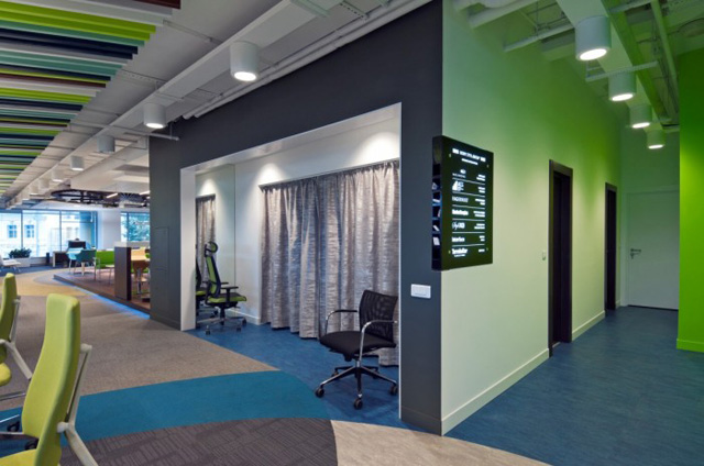 這種新方式組合出的辦公室內的辦公解決方案是一個活生生的陳列室。新辦公室展示的不僅僅是辦公家具,而且地板/天花板和照明解決方案和專業的環繞聲系統和智能照明控制系統的使用,同時為員工、客戶創造更好的辦公環境和展示環境。