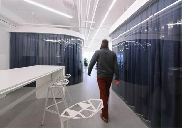 該辦公室是北京星云智熵科技公司的辦公空間,上海碧江辦公家具廠在為其員工提供一個可調節的工作空間的同時,將這個120平方米的環境打造成了一個不同區域之間一個高層次的靈活性。根據星云智熵科技公司CEO的初期想法,我們在對其辦公家具配置時做了一個系統性的劃分,并設定出“開放模式”以及“封閉模式”的兩種辦公家具配置方案,巧妙地劃分出一個會議室,開放的工作空間,金融家工作室,CEO工作室和一個小的存儲空間。