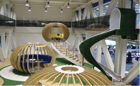 看了谷歌的休息區(qū)之后再看看國(guó)內(nèi)互聯(lián)網(wǎng)巨頭的休息區(qū)設(shè)計(jì)——“鳥籠”。這是360總部的員工休息區(qū)設(shè)計(jì),鳥籠設(shè)計(jì)似乎更加迎合了程序員“宅”的特點(diǎn),而這個(gè)滑梯通道的設(shè)計(jì)明顯抄襲硅谷的員工通道設(shè)計(jì)。但是360休息區(qū)的整體設(shè)計(jì)在國(guó)內(nèi)互聯(lián)網(wǎng)中以及算是“走在時(shí)尚前沿”了。