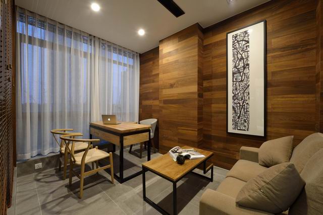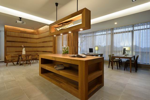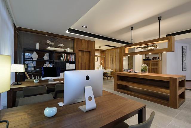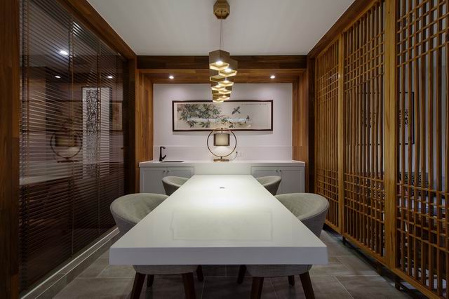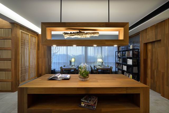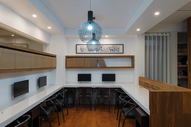 上海辦公家具廠——碧江辦公家具為了突出一野設計公司的主題,公司入口處的墻面內嵌的字深深印入腦海,入口處的地面拼花磚定制轉也注入了“一野設計”四個大字。一走進工作室左手邊就是會客接待區域,地面鋪設青灰色地磚,墻面掃白掛畫,木質燈具,簡單大方,深灰色的布藝沙發以及官帽藤椅,具有個性的靠枕,有著中式代表性的方幾,一套茶具擺在上面,用鏤空木質板把空間分隔開來,再走近一看整個空間就豁然開朗了,首先一個大島臺映入眼簾,島臺是用木地板制成,上方的燈具也是自己設計的,中間吊掛起來的朽木是一大亮點。島臺的左右兩邊都是辦公區域,靠窗角落里的干枝樹以及三個榆木書架更加彰顯了中式的味道,兩堵檔案墻記載著客戶與我們共同走過的路程。