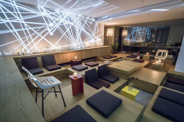 聚會(huì)——聚會(huì)是設(shè)計(jì)師們?cè)谝黄鸾?jīng)常舉辦的,每到周末,空間變化成為另一番景象,當(dāng)做辦公空間中使用的前臺(tái)接待臺(tái)變?yōu)榭犰诺腄J臺(tái),擺滿各種酒水的長(zhǎng)吧臺(tái),7米長(zhǎng)的投影演繹各種迷幻圖像。
