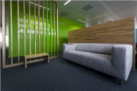 在這個(gè)主要辦公區(qū)域,每個(gè)不同模塊的辦公功能區(qū)域都采用了簡(jiǎn)單的木柵欄分離開來,將職員辦公區(qū)、會(huì)議區(qū)、洽談區(qū)以及休閑區(qū)化整為零,渾然形成了一個(gè)簡(jiǎn)約時(shí)尚的辦公主題。看到這樣的主題的辦公區(qū)域,我想每個(gè)年輕人都是非常向往的。不知道沒有身臨其境的您,是否因此而“觸動(dòng)”呢?