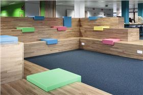 這種多功能型洽談區(qū),可以因?yàn)榻巧淖儎?dòng),來一個(gè)華麗蛻變,蛻變成職員休閑區(qū),難道您不這么覺得嗎?天然藍(lán)的色彩背景圍繞在我們周圍,簡(jiǎn)簡(jiǎn)單單的兩個(gè)長(zhǎng)凳,這樣的一個(gè)空間告訴我們?cè)瓉砗?jiǎn)單可以如此時(shí)尚。