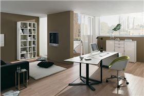 簡簡單單的辦公空間里沒有多余的裝點,一個立式文件柜加上一套不是那么張揚卻又簡約時尚的辦公桌椅,奶白色的茶水柜上還有一株小小的綠植。這個場景是不是覺得在哪好像見過,那么的熟悉,好好想想家里的小客廳是否跟這個辦公環境有點相似呢?