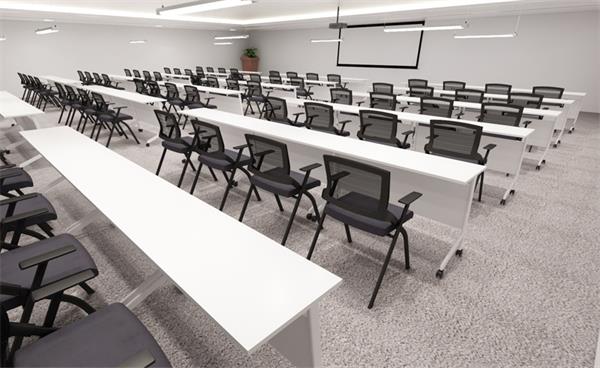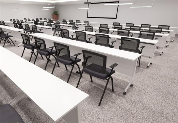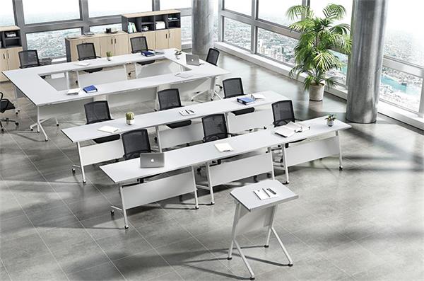 白色板式學生辦公折疊帶輪多功能員工會議培訓條桌椅組合